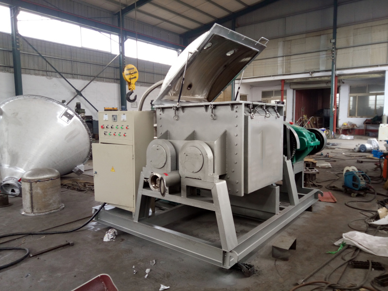 捏合機(jī)可制成普通型、壓力型、真空型、高溫型四種,根據(jù)材質(zhì)可分為碳鋼捏合機(jī)、不銹鋼捏合機(jī)及特種材質(zhì)捏合機(jī)。調(diào)溫形式采用夾套、蒸汽、油加熱、水冷卻等方法,采用液壓翻缸及啟蓋。出料方式有液壓、翻缸傾倒、球閥出料,螺桿擠壓、液壓翻板出料等。并可通過PLC實(shí)時控制及記錄生產(chǎn)中的溫度、時間、粘度等相關(guān)數(shù)據(jù)。缸體及漿葉與物料接觸部分均采用不銹鋼、合金鋼、錳鋼等材質(zhì)制成,確保產(chǎn)品質(zhì)量。