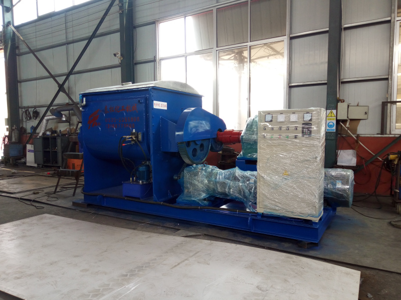 螺桿擠出捏合機由不銹鋼材質制成,配有快慢攪拌槳減速機2臺,螺桿出料,設備外有外型腔。