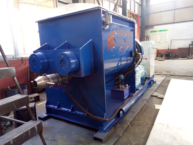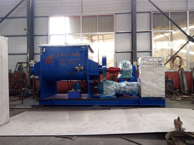 該種捏合機的出料經螺桿把物料輸送出來,在操作過程中為了使螺桿中的物料處分得到充分攪拌,螺桿減速機和捏合機主電機應同步運轉,但旋轉方向應與出料的旋轉方向相反。捏合機內的在充分攪拌之后,把螺桿尾部的出料堵板打開,把螺桿減速機的旋轉方向調到出料方向,向外輸送物料至輸送完畢。要及時清理粘附在螺桿及螺旋翅子上的物料,以免影響到下一道工序。