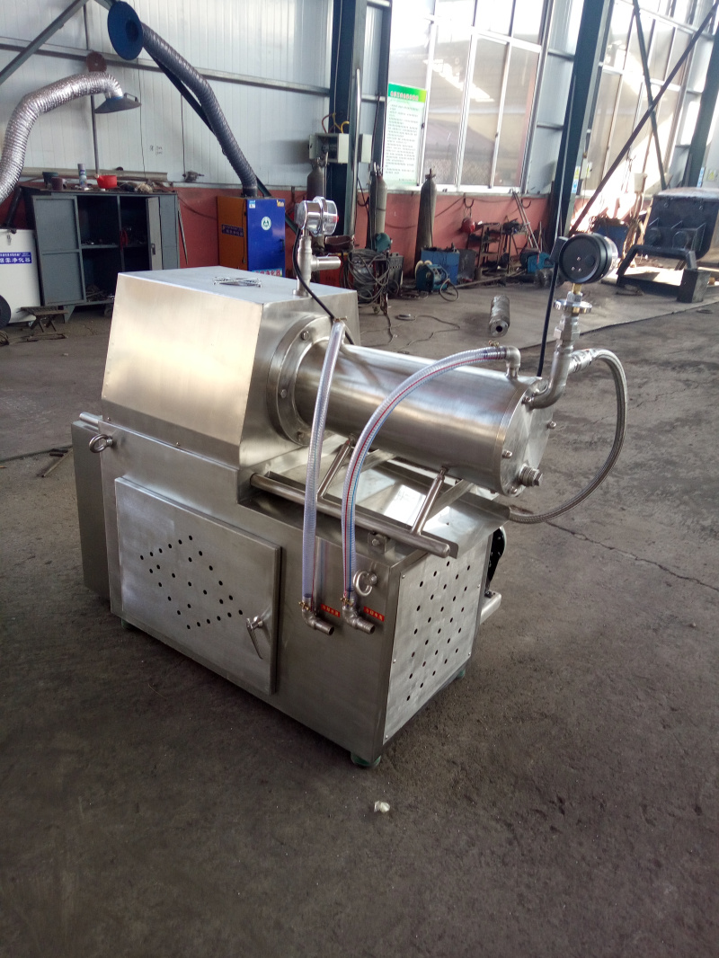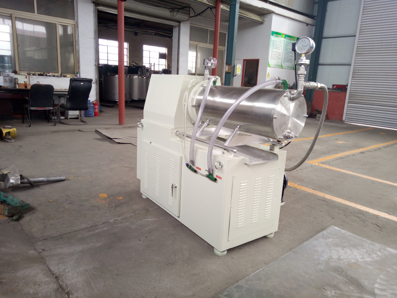 臥式砂磨機(jī)是利用料泵將經(jīng)過(guò)攪拌機(jī)預(yù)分散潤(rùn)濕處理后的固-液相混合物料輸入筒體內(nèi),物料和筒體內(nèi)的研磨介質(zhì)一起被高速旋轉(zhuǎn)的分散器攪動(dòng),從而使物料中的固體 微粒和研磨介質(zhì)相互間產(chǎn)生更加強(qiáng)烈的碰撞、摩擦、剪切作用,達(dá)到加快磨細(xì)微粒和分散聚集體的目的。研磨分散后的物料經(jīng)過(guò)動(dòng)態(tài)分離器分離研磨介質(zhì),從出料管流出。臥式砂磨機(jī)特別適合分散研磨粘度高而粒度要求細(xì)的產(chǎn)品。